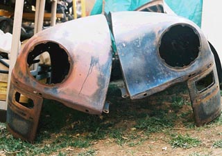March 2004 - Trunk lid from '48 Traveller we hauled back from Illinois. Ready for blasting. |